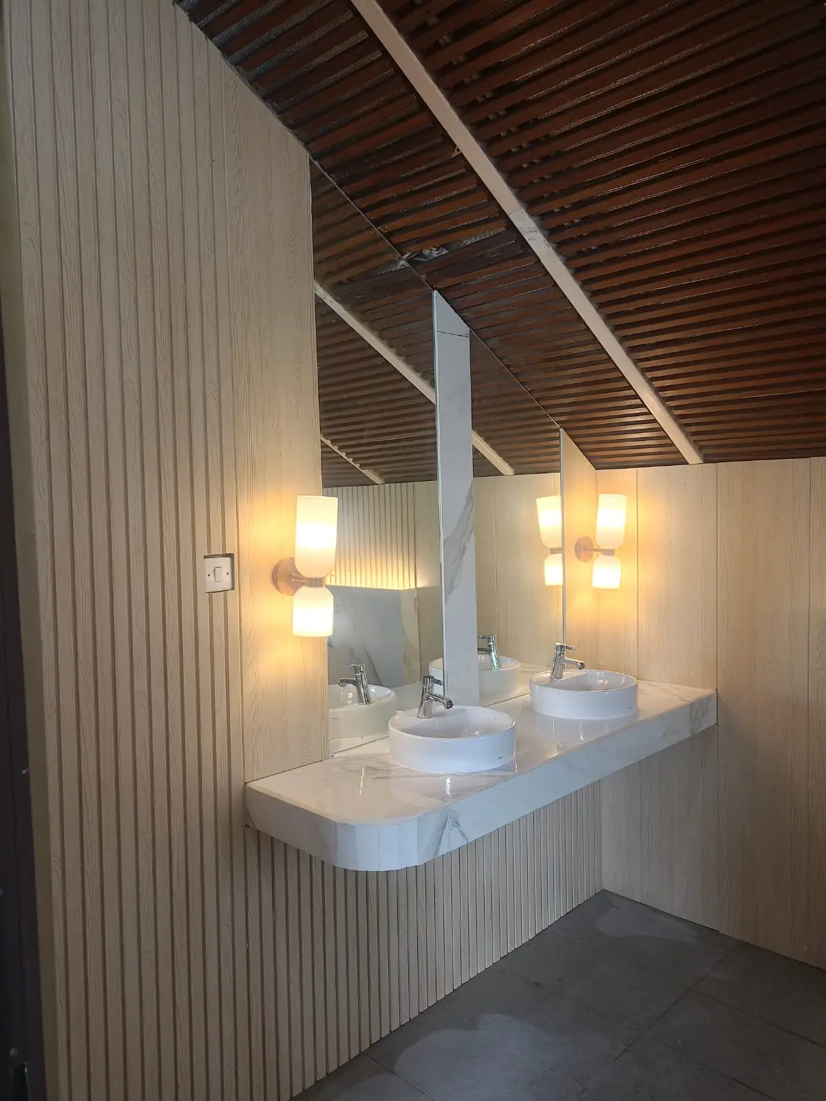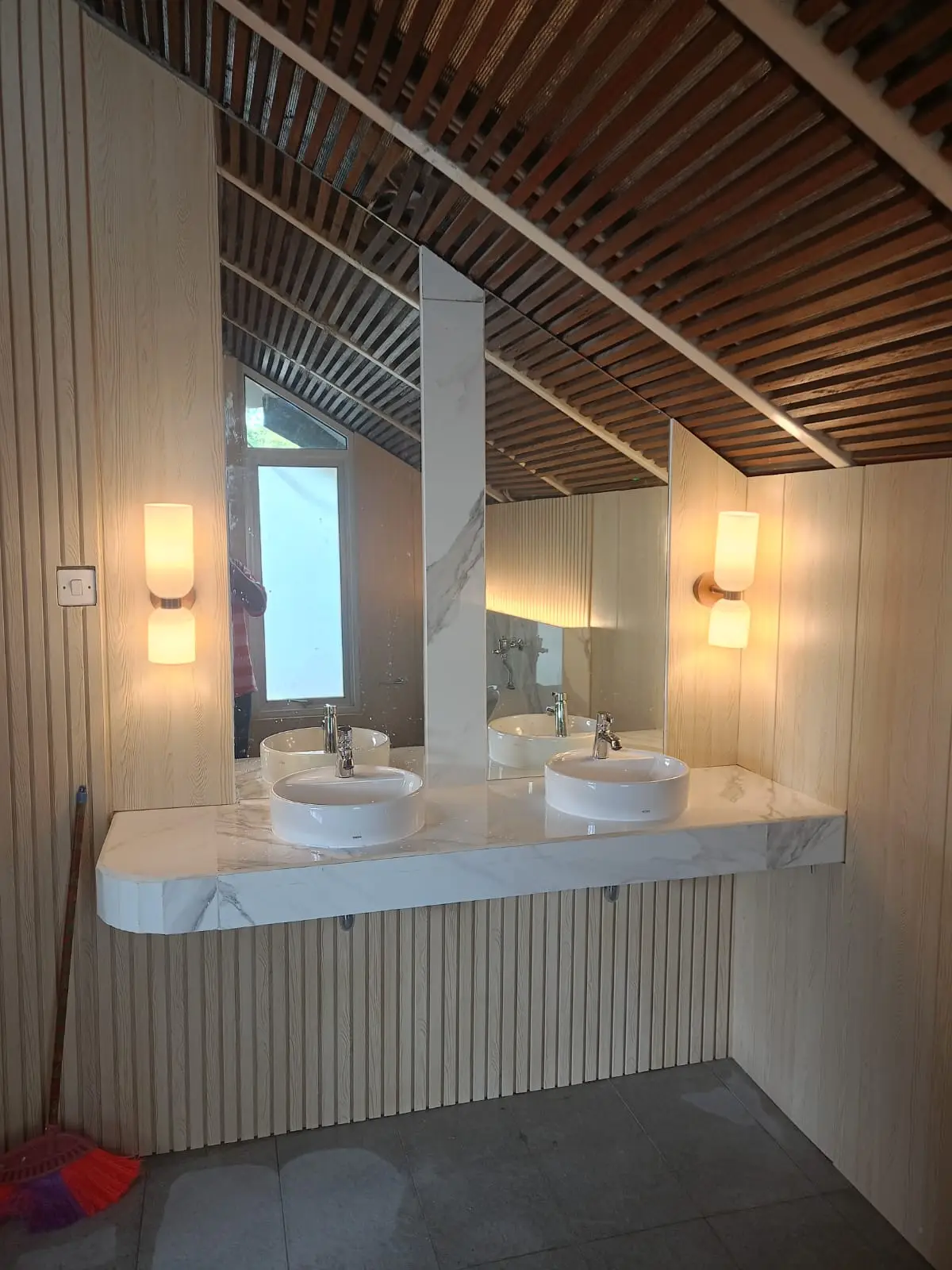 Pekerjaan mencakup pembongkaran area lama, perbaikan instalasi plumbing dan listrik, pemasangan keramik dinding dan lantai, penggantian sanitair, serta pengecatan dan finishing akhir. Seluruh proses dilakukan dengan perencanaan yang rapi dan memperhatikan detail agar hasil akhir terlihat bersih, elegan, dan tahan lama.