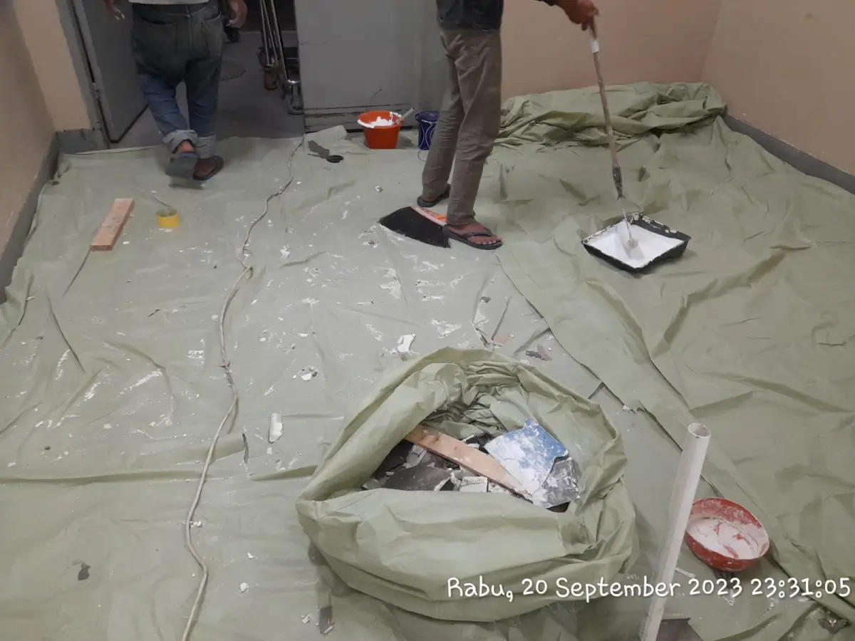 Seluruh proses dikerjakan dengan pengawasan ketat dan standar kebersihan tinggi, mengingat lokasi berada di lingkungan fasilitas kesehatan. Tim KSP Kontraktor memastikan setiap tahap pekerjaan dilakukan dengan cepat, aman, dan hasil yang presisi.